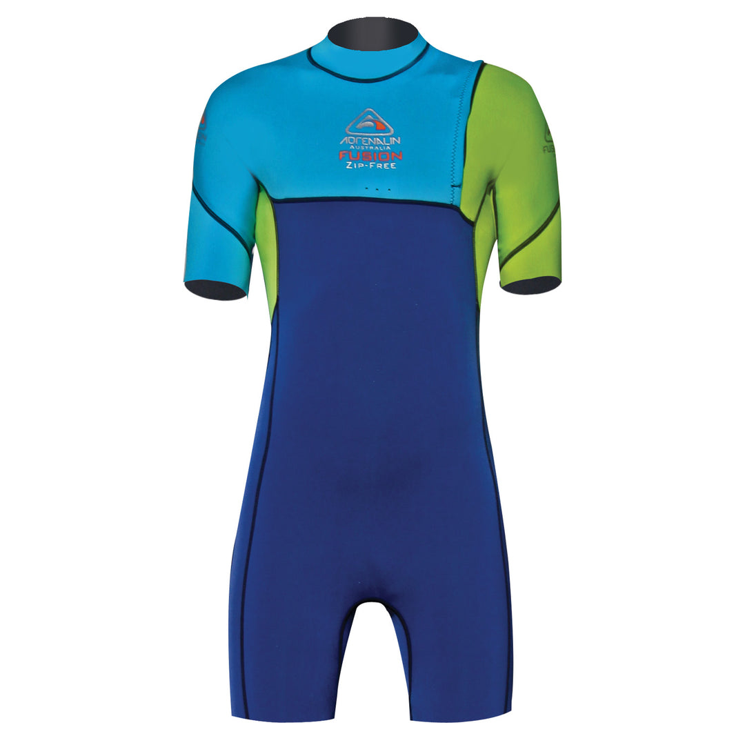 Junior Fuzion 2/2 No-Zip Short Sleeve Springsuit Kids Wetsuit - Lime/Blue